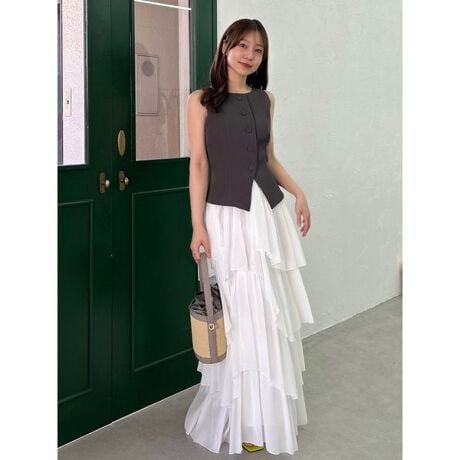 ランダムなティアードデザインが華やかな、一枚でスタイリングが決まるスカートです。