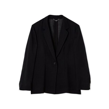 夏らしく清涼感のある、カラミ織りの生地で仕立てた、表情豊かなジャケットです。