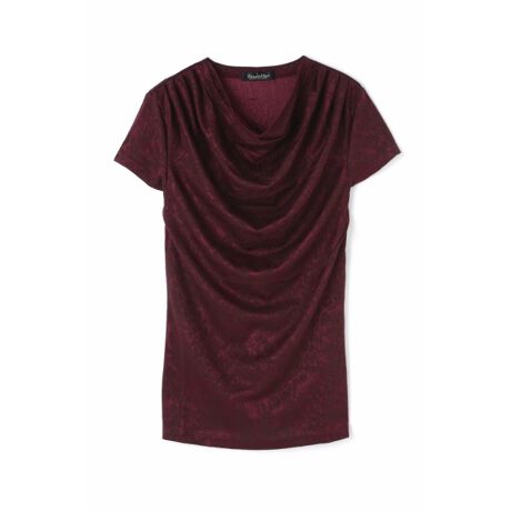【DESIGN】アニマルジャカード素材を用いたドレープカットソー。フロントゆとりを持たせた美しいドレープシルエットが特徴の一枚です。【TEXTILE】国産のオリジナルジャカ−ドジャージー。ブライトエステル糸を使用した、奥行きの感じるジャガード組織になっています。光沢感ある表情に、ブランドらしいアニマル柄で繊細さを表現しています。