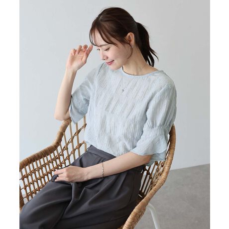 上品さがある、やや透け感のあるシアーな素材感で女性らしく着こなせ、