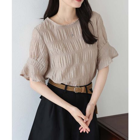 繊細なディテールが詰まったドットシアー半袖ブラウス