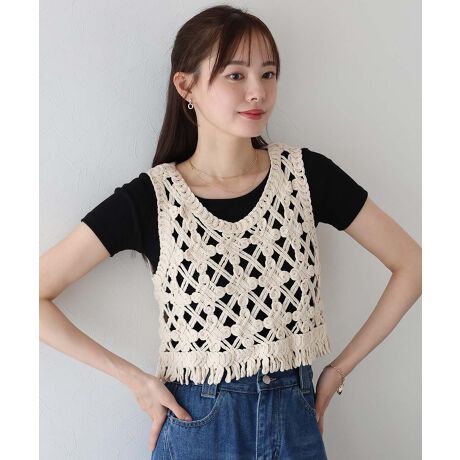 ナチュラルな風合いのクロシェ編みが夏らしい抜け感をプラスしてくれるベスト。
