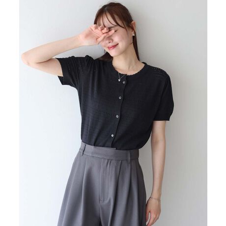 アイレット柄に編まれたニット生地が女性らしいニットトップス。