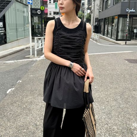 ・たっぷり入ったギャザーがポイントのトレンドライクなキャミビスチェです