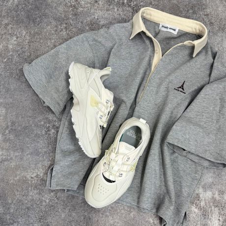 ・トレンドのボリューム感のある厚底ミッドソールはランニングシューズを基にしており、非常に歩きやすく快適な履き心地◎