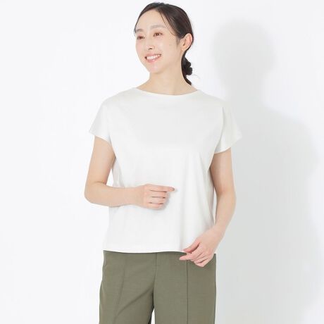 袖の切り替えがなく肩に馴染むフォルムが、カジュアルなTシャツをエレガントな印象にしてくれます。