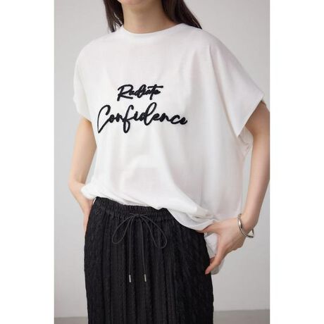 ■シシュウロゴTシャツ■ポイント今季トレンドであるハブラシのような刺繍が特徴のTシャツです。■ディティールすっきりしながらも程よく、二の腕をカバーしてくれるフレンチデザインがポイントです。ゆったりしているシルエットながらも女性らしい印象を与えてくれます。■スタイリングどんなボトムにも合わせやすい着丈なので、パンツにスカート、幅広いスタイリングを楽しんでいただけます。■生地薄手で柔らかさもありながらドライタッチな天竺です。刺しゅうの密度には個体差がありますが、二次加工の特性です。透け感:WHTはややあり裏 地:なし伸縮性:なし光沢感:なし[注意事項]※画像の商品はサンプルです。実際の商品と仕様、加工が若干異なる場合があります。※画像の商品は光の照射や角度、お使いのモニター環境により、実物と色味が異なる場合がございます。※着用、お取り扱いの際は、アテンションタグをご確認ください。