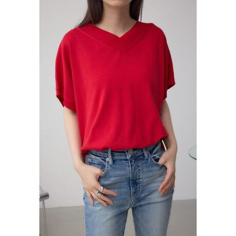 ■Vネックワイドルーズニット■ポイントリラックス感のあるオーバーサイズでヒップが隠れる丈感です。適度なハリを持たせた素材は体のラインを拾わずスッキリとした印象です。■ディティールシンプルなデザインなので、幅広いテイストやボトムと合わせていただけます。オーバーサイズなので気温によってトレンドのシアーインナー合わせなど、レイヤードアイテムとしても着こなし可能です。■スタイリングカジュアルにデニムやきれいめなワイドパンツなどで合わせるのがおすすめです。■生地ドライなタッチの素材と、伸縮性のある素材をプレーティングして編み立てた素材です。清涼感と伸びのある快適な着心地が特徴です。透け感:あり裏 地:なし伸縮性:なし光沢感:あり[注意事項]※画像の商品はサンプルです。実際の商品と仕様、加工が若干異なる場合があります。※画像の商品は光の照射や角度、お使いのモニター環境により、実物と色味が異なる場合がございます。※着用、お取り扱いの際は、アテンションタグをご確認ください。