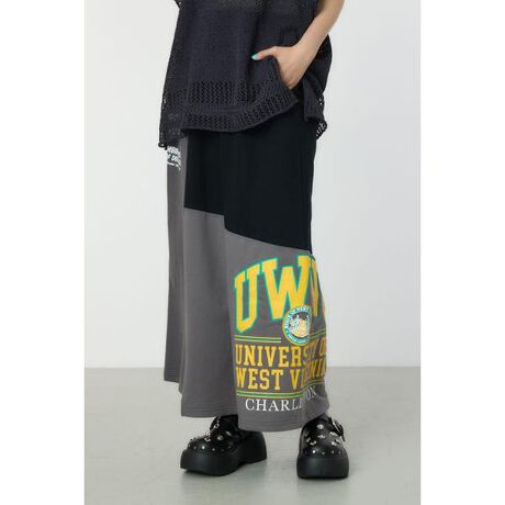 ■ポイント使いやすいベーシックなスカートにヴィンテージアメリカンなグラフィックが散りばめられたリメイクライクなスカート。■ディティール一部クラック手法でプリントし味のあるグラフィックになっています。生地が配色になっていますが同系色なので、着やすいながらも主役級の一枚。裾がアシンメトリーな段になっているのもポイント。RODEOらしいヴィンテージライクで個性的なアイテムが好きな方におすすめ。■スタイリングTHREE-LETTER ACRONYM Tシャツ(420ISD90-1491)などのシンプルなTシャツと合わせるのがおすすめ。■生地プリントが多く、接ぎ位置によって見え方が変わります。又、クラックプリント部分は手で割るため、割れ方に個体差があります。プリントの出方に個体差がありますが、二次加工特性によるものです。プリントを重ねるとくっついたり色移りの可能性がありますので注意してください。プリント商品の為、着用・洗濯によリ白化する場合があります。■透け感:なし■光沢感:なし■伸縮性:あり■裏 地:なし[注意事項]※画像の商品はサンプルです。実際の商品と仕様、加工が若干異なる場合があります。※画像の商品は光の照射や角度、お使いのモニター環境により、実物と色味が異なる場合がございます。※着用、お取り扱いの際は、アテンションタグをご確認ください。