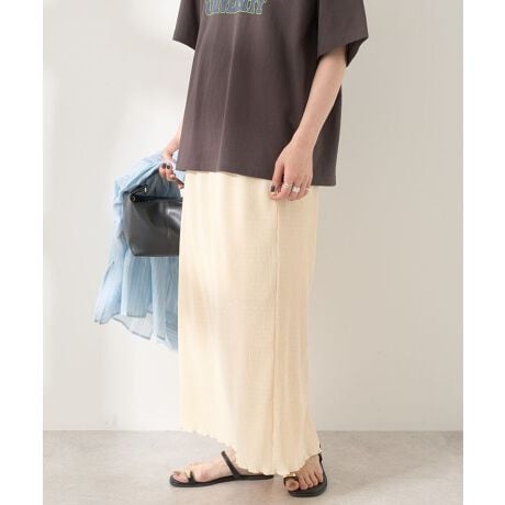 シャリ感のあるワッシャー加工を施したタイトプリーツスカート。軽量素材の軽い穿き心地とリラクシーなストレッチ性が嬉しいトレンド感あるお仕立てです。ウエストもシャーリングゴム仕様で楽に着脱出来、タックインでも綺麗にフィット。バックスリットヘムで足さばきもしやすく抜け感あるスタイリングを後押しします。長めのシャツとレイヤードした旬スタイルもおすすめ。透け感[なし]
