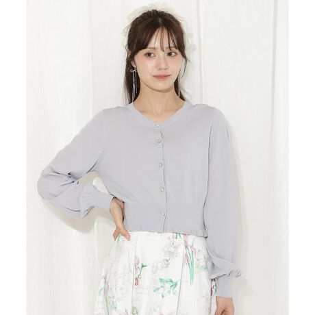 裾フリルビジューボタンカーディガン