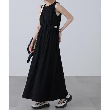 ご好評をいただいてるアイテムが今年も登場!オフ・ブラウンが新色です。チラッと肌見せするトレンドのカットアウトがヘルシーなワンピースです。表面感のあるしっかりとした素材なのでさらっと着られます。抜け感のある両サイドのウエストと背中の程よい開き具合のカットアウトが取り入れやすいポイント。バックスタイルはビスチェをレイヤードしたようなデザインにシャーリングを施し、体に着心地良くフィットします。ウエストの切り替え位置が高めなので、スタイルアップを叶えてくれる1枚。キャップにスニーカー合わせがおすすめです。※モデルの着用画像の場合、光の当たり具合により、実際の色味と異なって見えることがございます。色味は、商品単体の画像をご参照ください。