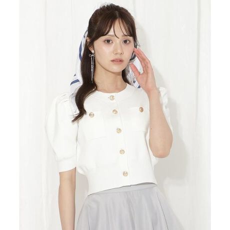 クラシカルなディテールと着回し力を兼ね備えた、パフスリーブのショート丈カーディガン【Design】・ふんわりとしたパフスリーブが可愛らしさを引き立てる、上品なショート丈カーディガン。・リブ仕立ての袖と裾がほどよくフィットし、伸縮性のある生地感で快適な着心地♪・エンブレム風のゴールドボタンが華やかなアクセントとなり、コーデにクラシックなエッセンスをプラスします。・胸元にはさりげなくポケットをあしらい、実用性とデザイン性を両立◎・羽織りとしてはもちろん、フロントボタンを閉じてトップス風に着こなすのもおすすめです♪・キャミワンピースやハイウエストボトムとの相性も抜群で、夏の着回しに活躍する一枚です。【Fabric】・伸縮性のある生地を使用。・夏にも着回ししやすい生地感です。・ご自宅でお手入れが出来るのも嬉しいポイント♪・ホワイト、ピンク、サックス、ネイビーの4色展開となります。【Care】手洗い可能