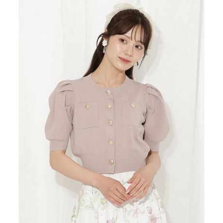 クラシカルなディテールと着回し力を兼ね備えた、パフスリーブのショート丈カーディガン【Design】・ふんわりとしたパフスリーブが可愛らしさを引き立てる、上品なショート丈カーディガン。・リブ仕立ての袖と裾がほどよくフィットし、伸縮性のある生地感で快適な着心地♪・エンブレム風のゴールドボタンが華やかなアクセントとなり、コーデにクラシックなエッセンスをプラスします。・胸元にはさりげなくポケットをあしらい、実用性とデザイン性を両立◎・羽織りとしてはもちろん、フロントボタンを閉じてトップス風に着こなすのもおすすめです♪・キャミワンピースやハイウエストボトムとの相性も抜群で、夏の着回しに活躍する一枚です。【Fabric】・伸縮性のある生地を使用。・夏にも着回ししやすい生地感です。・ご自宅でお手入れが出来るのも嬉しいポイント♪・ホワイト、ピンク、サックス、ネイビーの4色展開となります。【Care】手洗い可能