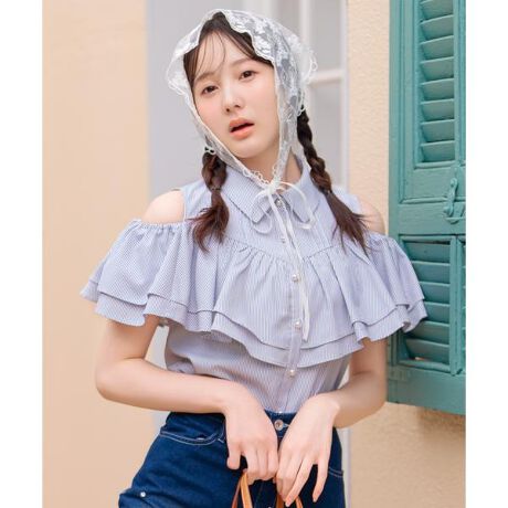 可憐なフリルと上品なディテールが、女性らしさを引き立てるきれいめブラウス【Design】・胸元のたっぷりとしたフリルデザインが視線を惹きつける、フェミニンなきれいめブラウス。・ピンタックの繊細なディテールとパールボタンが、上品でクラシカルなムードを演出します!・オープンショルダー部分はボタン留め仕様になっており、オフショル風にも閉じてフリルスリーブ風にもアレンジ可能♪・1枚で主役になるデザインなので、シンプルなボトムに合わせるだけで華やかさをプラス。・フレアスカートと合わせてレディな着こなしや、デニムで上品カジュアルコーデにもおすすめ◎・オンにもオフにも活躍する、トレンド感ときちんと感を両立した大人のフリルブラウスです。【Fabric】・さらりとした着心地の生地を使用。・ご自宅でお手入れが出来るのも嬉しいポイント♪・ホワイト、ブルー、ストライプの3色展開となります。【Care】手洗い可能