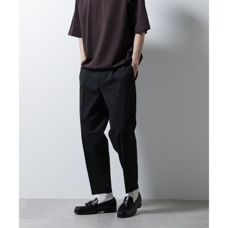 涼しげなリネン混素材が魅力なテーパードパンツ。 ウエスト調整しやすいように、サイドシャーリングを施したデザインが特徴。真夏でもオンオフ問わず活躍する一本です。
