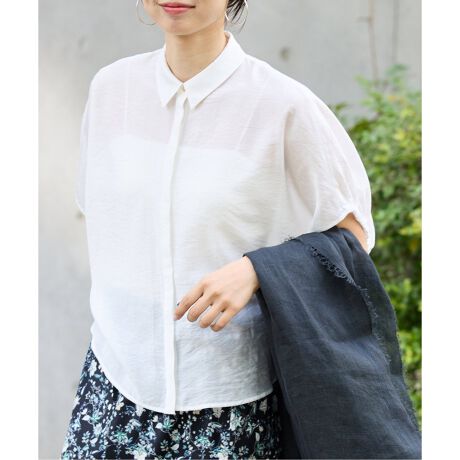 ほどよいきちんと感と涼やかさを両立した、リネン混の衿付きブラウス。
