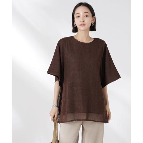 トレンド感のあるメッシュ素材をナチュラルな印象で着れるプルオーバーブラウス。程よいメッシュの大きさで個性的すぎず、ゆったりとした身幅と透け感のあるシフォン素材の裏地でリラックスした大人な雰囲気に。着丈はやや長めのチュニック丈なのでシンプルなパンツやタイトスカートと合わせたスタイルがおすすめです。