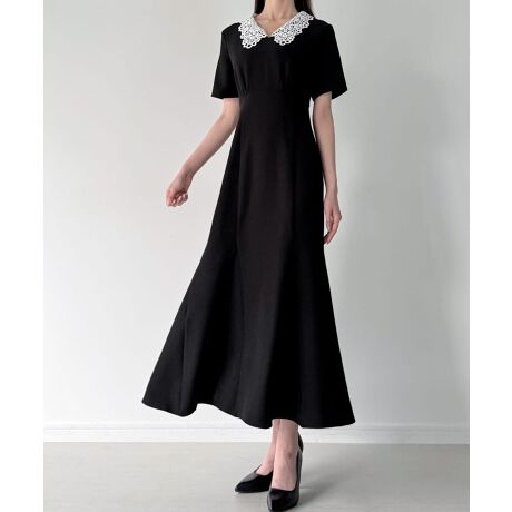 レース襟フレアマーメイドワンピース(薄手、裏地無し)