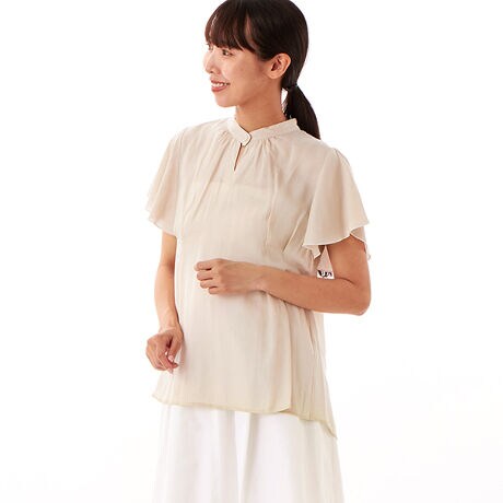 【半袖ブラウス・涼しい】キュプラローン フレアー袖チュニック