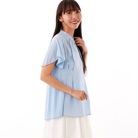 【半袖ブラウス・涼しい】キュプラローン フレアー袖チュニック