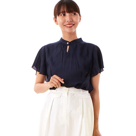 【半袖ブラウス・涼しい】キュプラローン フレアー袖チュニック