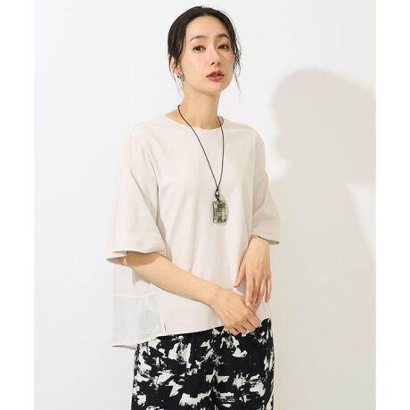 ・さらりとしたコットン混のポンチ素材とシアーなカラミのコンビネーションプルオーバー