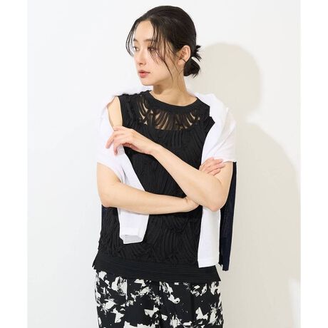 チュールに刺繍を施した上質感のあるノースリーブプルオーバー