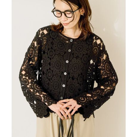 肌触りのソフトな素材で編み立てたカーディガン。シンプルなデザインながらレースの華やかさが目を惹き、ボトムにさらりと合わせるだけでこなれたスタイリングが完成します。スカラップ仕様の袖口と裾が洒落感のあるポイント。シーズンを通してデイリーに活躍するおすすめのアイテムです。透け感[ややあり]