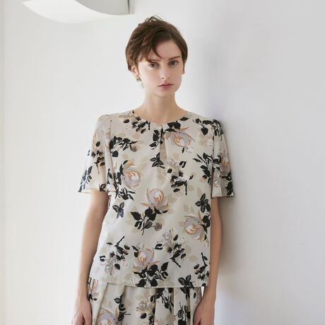 プリントの柄を活かしたシンプルなプルオーバータイプのブラウスです。