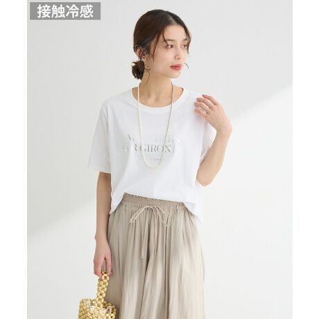 煌めく箔プリントで表現したグラフィックロゴがスタイリッシュなTシャツ。接触冷感のあるテキスタイルで暑いシーズンも快適にご着用いただけます。洗濯してもよれにくいのも魅力のポイント。ゆったりとしたサイズ感のベーシックシルエットでトレンドライクに着こなせるおすすめアイテムです。透け感[ややあり]
