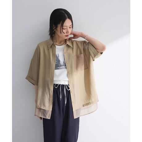 肌触りのさらりとした素材で仕立てたショートスリーブシャツ。ポケットと裾にドッキングしたシアー素材が抜け感のある着こなしを演出します。肩の落ちたゆとりのあるサイズで、軽やかな着用感がこれからの季節に最適。合わせるボトムを選ばず、デイリーに活躍するおすすめのアイテムです。