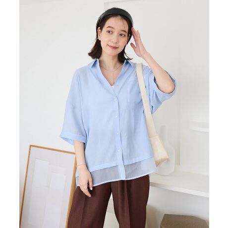肌触りのさらりとした素材で仕立てたショートスリーブシャツ。ポケットと裾にドッキングしたシアー素材が抜け感のある着こなしを演出します。肩の落ちたゆとりのあるサイズで、軽やかな着用感がこれからの季節に最適。合わせるボトムを選ばず、デイリーに活躍するおすすめのアイテムです。