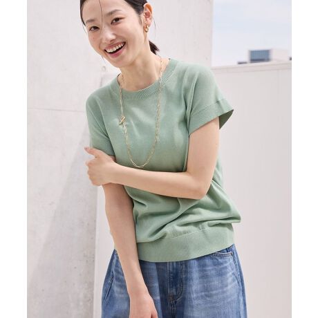 接触冷感フレンチスリーブニットプルオーバー