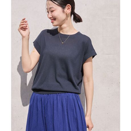 肩のラインをなだらかに魅せるフレンチスリーブで、女性らしい印象を与える上品ニット。ゆったりした着心地ながら、アウトラインに施したリブでメリハリを効かせたシルエットデザインです。触れるとひんやり涼しい接触冷感素材なのも魅力的なポイント。カジュアルにもきれいめにも合わせやすい、着回し力抜群のアイテムです。