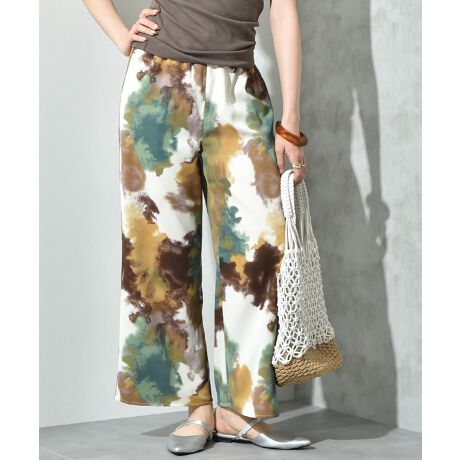 透け感の少ないデシン素材を使用。シワになりにくく、柔らかさのある女性らしいパンツです。シルエットはワイド過ぎず、裾に向かって自然に広がった縦長シルエットはスタイルアップ効果の抜群!!脚のラインも拾いにくく、おしゃれをしながら体型もカバーしてくれます。