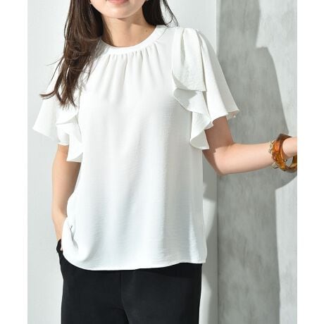 ふんわり広がるフリルスリーブブラウス