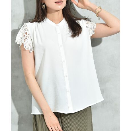 【UV・接触冷感】ポーラバンドカラーレース袖ブラウス