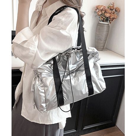 光沢感のある素材がコーデに華やかさを添え、シンプルながら存在感のある2WAYバッグ