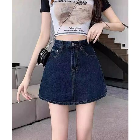 スカートのように見えるデザインが魅力的なハイウエストデニムスカパン。