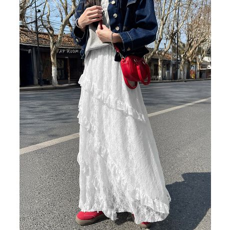 ティアードロングスカート白レーススカート