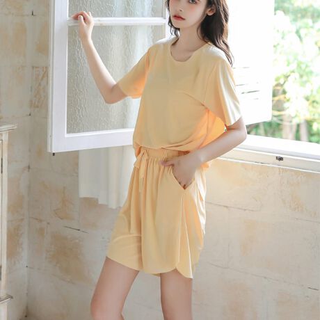 冷感素材を使用し、涼やかな肌触りのパジャマ2点セット。