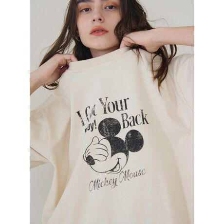 ビンテージ感のある生地に、プレイフルなイメージのミッキーとレトロな雰囲気のグラフィックデザインを組み合わせました。