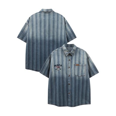 ヴィンテージ感漂うストライプ柄のデニムシャツ。胸元のワンポイント刺繍がアクセントとなり、シンプルながらも個性的な印象に。ウォッシュ加工が施された生地がこなれ感を出し、カジュアルコーデにもピッタリ。オーバーサイズシルエットで、トレンド感のあるゆったりとした着こなしが楽しめる。