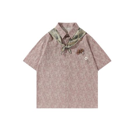 ヴィンテージ感漂う織り模様の生地に、ナチュラルなフラワー刺繍を施した上品な半袖シャツ。取り外し可能なスカーフがセットになっており、クラシックな雰囲気。シンプルながらも個性的なディテールが詰まった一枚。