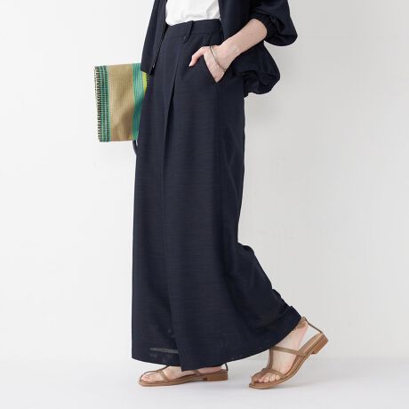 清涼感のあるバスケット素材を使用したワイドパンツ。