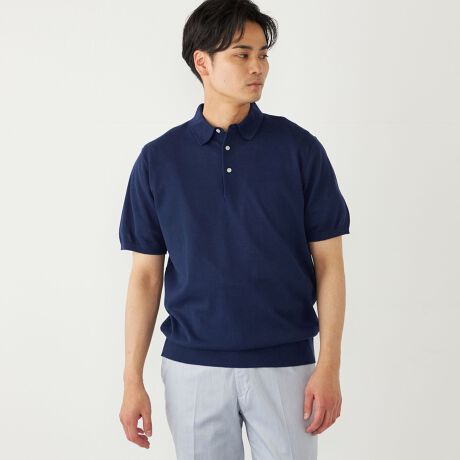 鹿の子素材のポロシャツにくらべ、上品さのあるニットポロはジャケットのインナーにもおすすめです。
