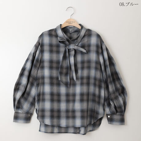 秋冬コーデに映えるグラデーションチェックが印象的なデザインブラウス。