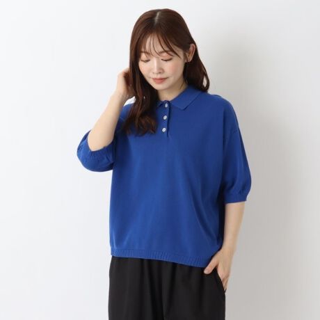 強撚コットン 5分袖ニットポロプルオーバー