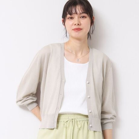 ノースリーブシャツ、タンクトップ、ノースリーブワンピースに合わせて肩から羽織ると抜け感のあるレイヤードコーディネイトに。